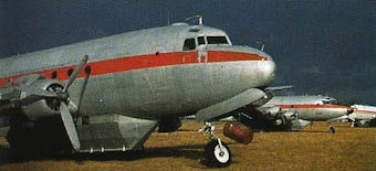 A brief burst of sun highlights the C-54 fleet on a stormy February 24, 2001.