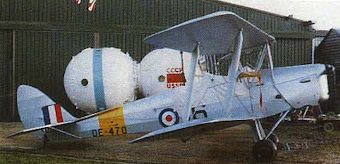 Регистрационный номер: DE470 The Soyuz T capsule skulks behind resident Tiger Moth DE470.