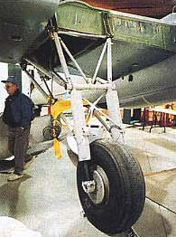 The starboard undercarriage. In the background is Cliff Oswald, builder of a 1/4-scale Mosquito model.