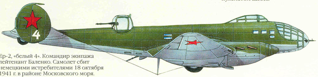 Ер-2, «белый 4». Командир экипажа лейтенант Баленко. Самолет сбит немецкими истребителями 18 октября 1941 г. в районе Московского моря.