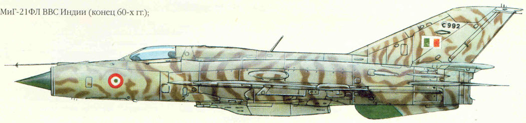 Регистрационный номер: C992 МиГ-21ФЛ ВВС Индии (конец 60-х гг.);