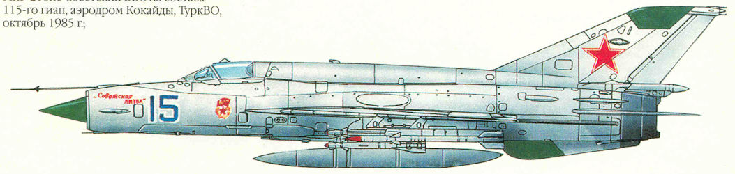 МиГ-21бис Советских ВВС из состава 115-го гиап, аэродром Кокайды, ТуркВО, октябрь 1985 г.;