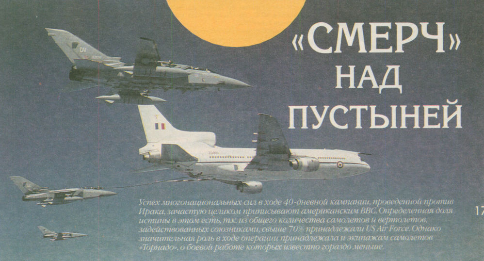 Регистрационный номер: ZD951, G-BFCD "Торнадо" F.Mk 3 из состава 11-й эскадрильи производят дозаправку топливом с танкера «Тристар» K.Mk 1 из 216-й эскадрильи в ходе перелета из Европы в Саудовскую Аравию.