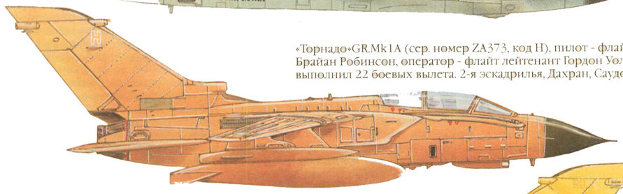 Регистрационный номер: ZA373 «Торнадо GR.Mk IA (сер. номер ZA373, код Н), пилот флайт лейтенант Брайан Робинсон, оператор - флайт лейтенант Гордон Уолкер. Экипаж Выполнил 22 боевых вылета. 2-я эскадрилья, Дахран, Саудовская Аравия.