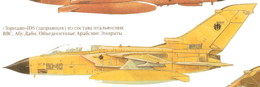 Итальянские «Торнадо» на авиабазе в Абу Даби. Хорошо видно, что их пустынный камуфляж заметно отличался от принятого англичанами и был более ярким.