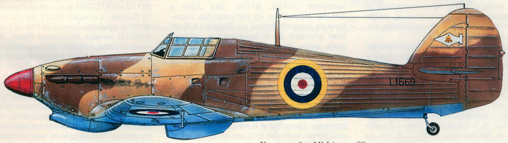 Регистрационный номер: L1669 «Харрикейн» Mk I/trop, 80-я эскадрилья, аэродром Парамития, Греция, февраль 1941 г.