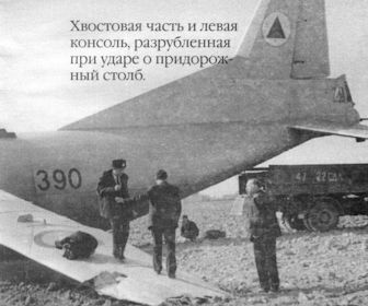 Хвостовая часть и левая консоль, разрубленная при ударе о придорожный столб.