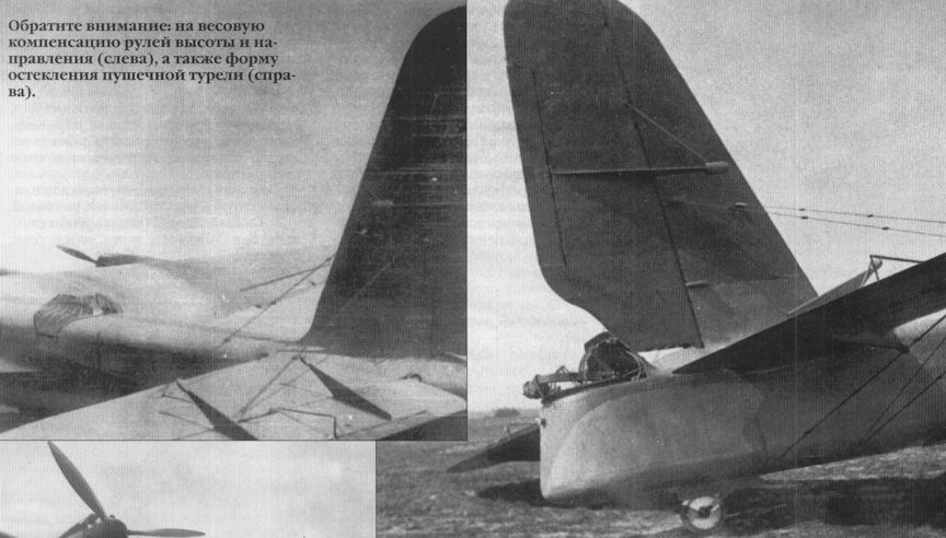 Обратите внимание: на весовую компенсацию рулей высоты и направления (слева), а также форму остекления пушечной турели (справа).