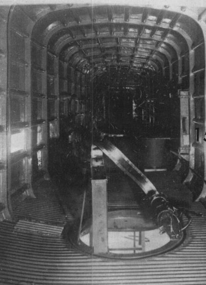 Внутренний интерьер фюзеляжа ДБ-А. Хорошо видны шпангоуты и силовые стрингеры, а также погон нижней турели.