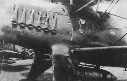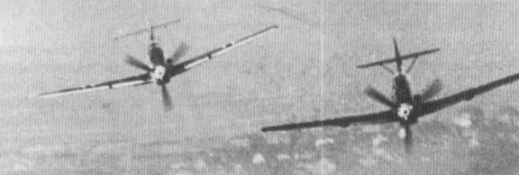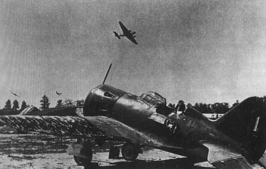 Советский истребитель И-16, захваченный 29 июня 1941 г. на одном из аэродромов Бобруйска танкистами генерала Гудериана. В воздухе видны транспортные Ju52.