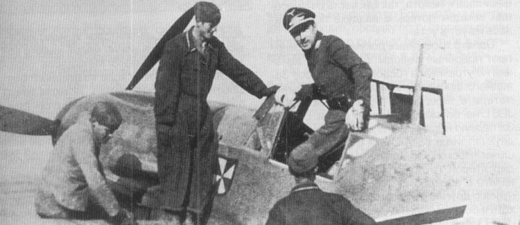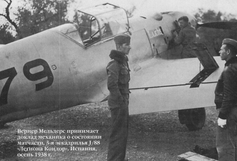 Вернер Мельдерс принимает Доклад механика о состоянии матчасти, 3-я эскадрилья J/88 «Легиона Кондор». Испания, осень 1938 г.