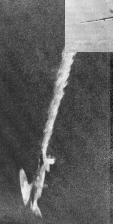 В кадре фотокинопулемета истребителя Вернера Мельдерса горящий «Спитфайр». Район Ла-Манша, лето-осень 1940 г.