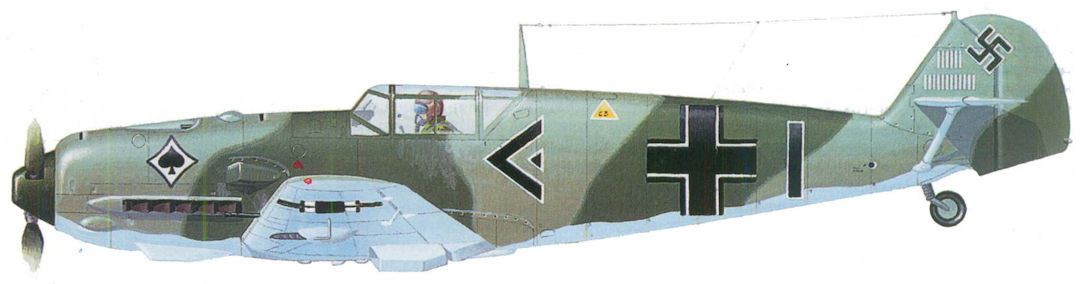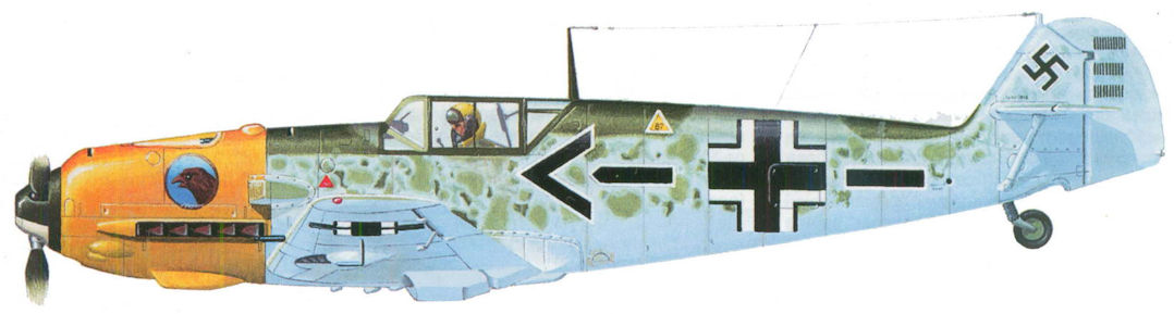 «Мессершмитт» Bf109F-4 из состава штабного звена II/JG3, который Оберст Вернер Мельдерс использовал для своих последних боевых вылетов. Крым, осень 1941 г.