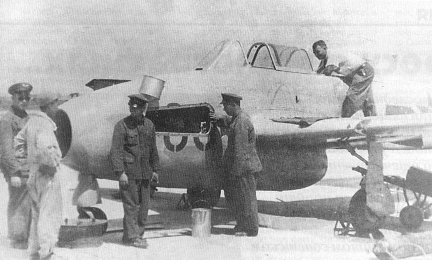Если с основными принципами работы поршневых двигателей китайские механики были неплохо знакомы, то реактивная техника для них оказалась едва ли не «сказкой, ставшей былью». Впрочем, благодаря врожденному трудолюбию, усидчивости и привычке вникать во все мелочи, подготовка на реактивные маШины шла быстро. В немалой степени этому способствовало и совместное (с советским персоналом) проведение регламентных работ. Регламентные работы на учебно-боевом истребителе Як-17. Аэродром Цзянвань, осень 1950 г.