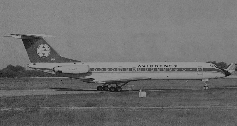 Регистрационный номер: YU-AHX Yugoslavian charter carrier Aviogenex operated a fleet of Tu-134s for many years, the aircraft being frequent UK visitors on flights to holiday destinations. One of the airline’s Tu-134As, YU-AHX, is seen here taxing out at Stansted on June 14, 1986.
