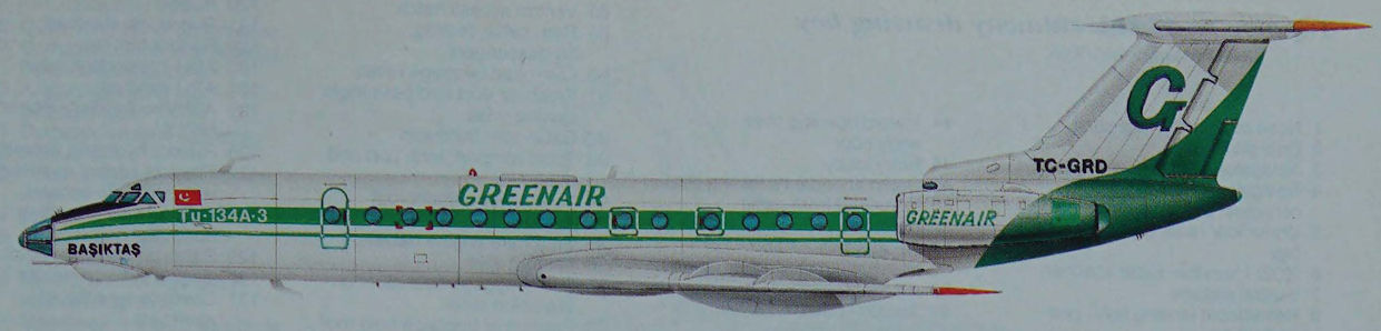 Регистрационный номер: TC-GRD, RA-65914, СССР-65914 Short-lived Greenair operated Tu-134A-3 TC-GRD/Basiktas, formerly SSSR-65914 on lease until it was returned to the Russian government VIP fleet as RA-65914.