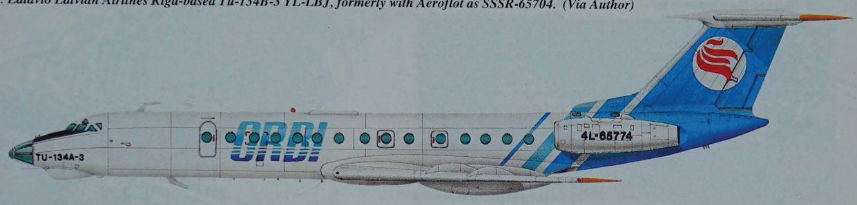 Регистрационный номер: YL-LBJ, СССР-65704 Latavio Latvian Airlines Riga-based Tu-134B-3 YL-LBJ, formerly with Aeroflot as SSSR-65704.