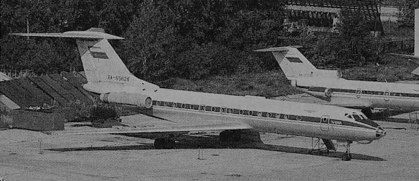 Регистрационный номер: RA-65612, RA-65958 Tu-134As RA-65958 (foreground) and RA-65612 at Syktyvkar in June 1994 emphasise the difference between the early glazed nose and the later solid nose housing the Grozna radar. Although the solid nose was not introduced until the Tu-134B came along, several Tu-134As were later converted, including those of Interflug, of which -65612 was one, before being returned to Aeroflot.