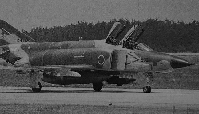 Sporting a brown and two-tone green camouflage, the ‘Woody Woodpecker’ badge on the fin of RF-4E 47-6903 denotes that the aircraft is on the strength of the 501st Hikotai.