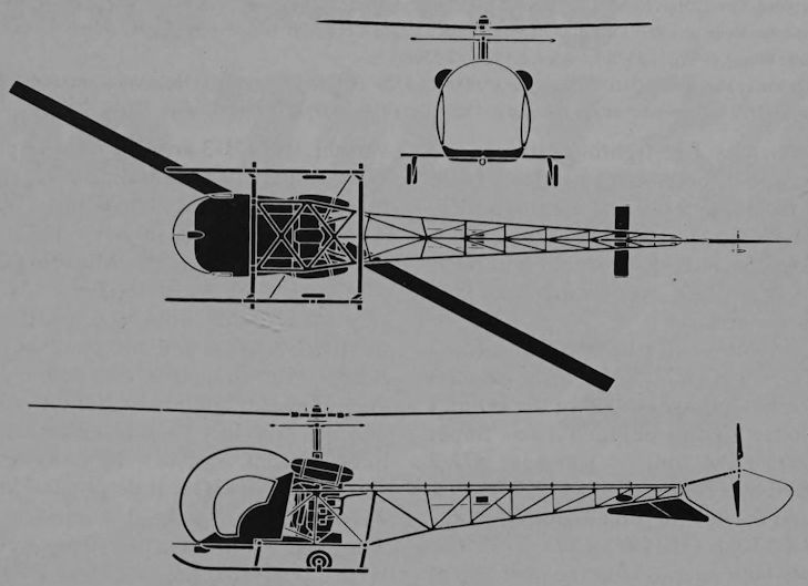 Регистрационный номер: NC142B The open cockpit Bell 47B-3, depicted here by demonstrator NC142B, was a crop-spraying variant available from 1948 and fitted with two hoppers of a total capacity of 400Ib (180kg) fitted either side of the fuselage. The type has seen extensive use in this role, for which later models are still in use today.