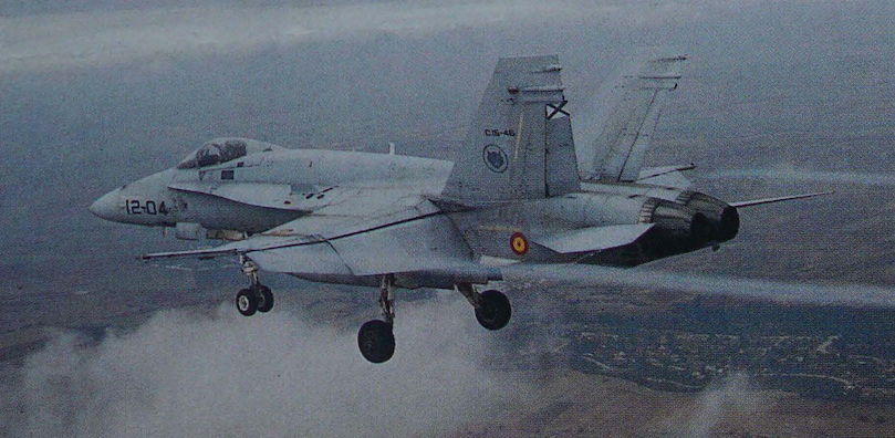 During the period September 1992 to December 1994, all Spanish Hornets were subjected to an upgrade programme performed by McDonnell Douglas and CASA technicians, at Zaragoza Air Base.