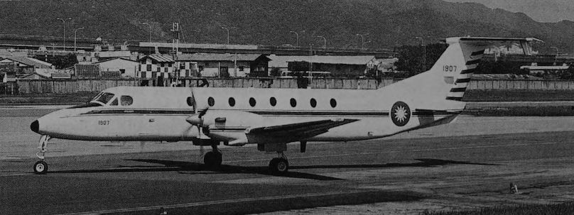 Photographed at the holding point at Sungshan airport is Beech 1900C 1907, one of 12 of the type delivered to RoCAF. In the VIP role, the type is known in RoCAF service as the UC-25.