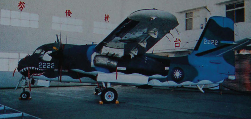 The RoCAF has upgraded its fleet of S-2E Trackers to S-2T Turbo Tracker configuration, including Garrett TPE-331-15AW turboprops with Dowty advanced technology four-bladed propellers plus a new and improved avionics fit. Sharkmouthed S-2T 2222 seen here is one of 32 to undergo conversion under a USN FMS contract, the first two being completed by Grumman and the remainder locally in Taiwan using kits.