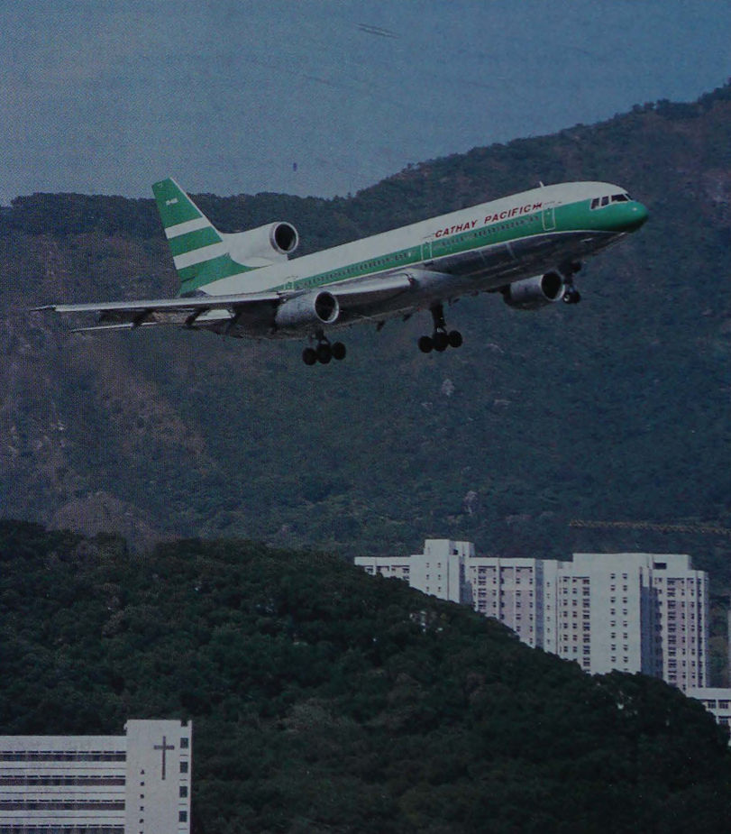 Регистрационный номер: VR-HHK Turning on to ‘finals’ for Kai Tak is Lockheed L-1011 TriStar 100 VR-HHK. The extra growth capacity afforded with the arrival of the TriStar in 1975 enabled Cathay to consolidate its existing routes in South East Asia and to open up new markets. Most of the TriStars were phased out of service during 1995, being superseded by Rolls-Royce powered Boeing 747s and Airbus 340-200s.