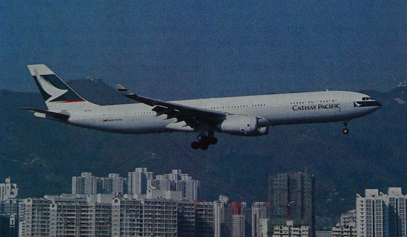Регистрационный номер: VR-HLC Airbus A330-200 VR-HLC is the third of the type to enter service with Cathay Pacific. It is seen here against the unmistakable backdrop of Hong Kong on approach to Kai Tak airport.