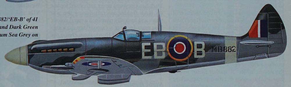 Регистрационный номер: MB882 Spitfire Mk XII MB882/‘EB-B’ of 41 Squadron in Ocean Grey and Dark Green upper-surfaces, with Medium Sea Grey on the under-sides.