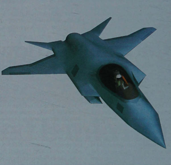 Artist’s impression of the latest configuration being considered by the BAe/McDonnell Douglas/Northrop Grumman team for its entry in the competition to build the next generation Joint Strike Fighter. Note the absence of vertical fins in this sleek, stealthy design, which will utilise thrust-vectoring for manoeuvring.