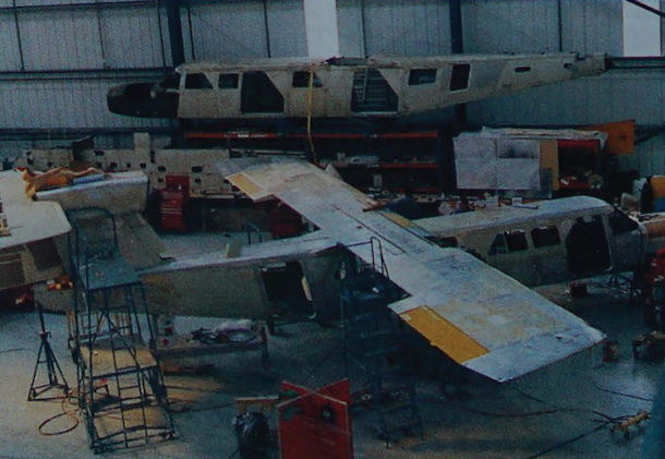 Manufacture on a somewhat smaller scale than the ‘big boys’ - seen nearing completion in the Anglo Normandy aero engineering hangar at Guernsey on March 1, 1996 is a new Trislander under construction for Aurigny Air Services using c/n 1065, a previously kit obtained from Florida last year - behind is a second kit, c/n 1072. The first aircraft was expected to fly by the end of March.