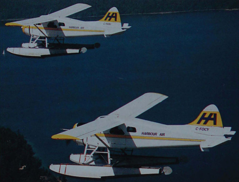 Регистрационный номер: C-FAXI, C-FOCY A pair of DHC-2 Beavers (C-FAXI and C-FOCY) over the coast of the Gulf Islands between Vancouver and Vancouver Island. Note the small fins on the tailplane to compensate for the destabilising effect of the floats.