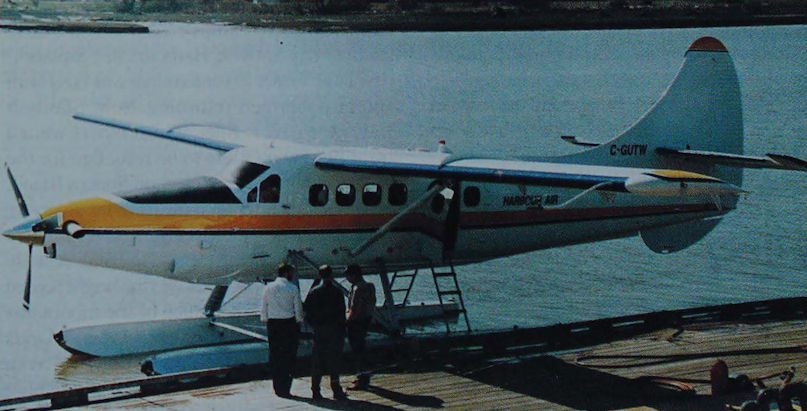 Регистрационный номер: C-GUTW One of Harbour Air Seaplanes’ Turbo-Otter conversions, C-GUTW, moored at the company's Fraser River terminal. The figures standing on the jetty give scale to this 16-seater.