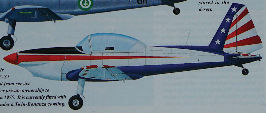 Variations on a theme: 1 de Havilland Canada DHC.1 Chipmunk, Canadian version with clear-view bubble canopy; 2 Farm Aviation built single-seat crop spraying variant, also representative of glider towing role with the addition of leading edge slats; 3 Hants & Sussex Aviation Ltd conversion of G-ATTS in 1966, which operated as a test-bed for the Rover TP-90 gas turbine; 4 Aerostructures Ltd of Australia ‘Sundowner’ conversion VH-CXZ fitted with 18Ihp Lycoming O-360-A1A, wingtip tanks and clear view canopy; and 5 Art Scholl’s single-seat aerobatic version N13Y with all-metal wing, increased area fin and a 260hp Lycoming GO-435 engine for the World Aerobatic Championships of 1968.