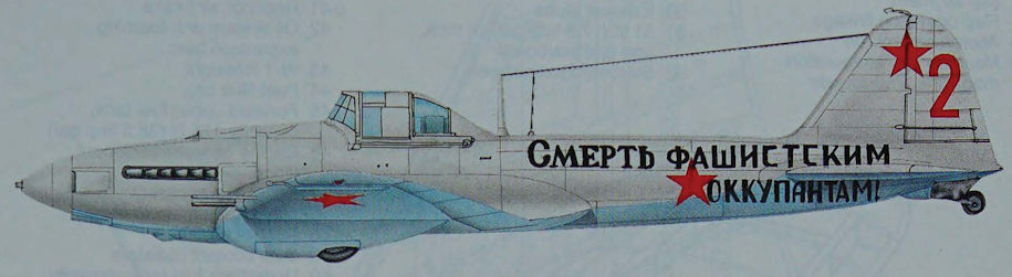 White 1, an Il-2 Type 3 was flown by twice Hero of the Soviet Union Ivan F Pavlov. An inscription on the fuselage reads, To the compatriot Hero of the Soviet Union comrade Pavlov from the workers of the city of Kustanaj. The aircraft was assigned to the 6th Guards Assault Aviation Regiment.