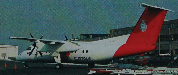 Регистрационный номер: C-FXFK De Havilland Canada Coastwatch Dash 8 C-FXFK is one of three aircraft ordered by Skywest Aviation of Western Australia for the Australian Customs and Immigration service. The Coastwatch Dash 8s are equipped with Litton radars for their maritime patrol duties and this example was photographed at Pearson (Toronto) International Airport on March 14, 1996, prior to delivery.