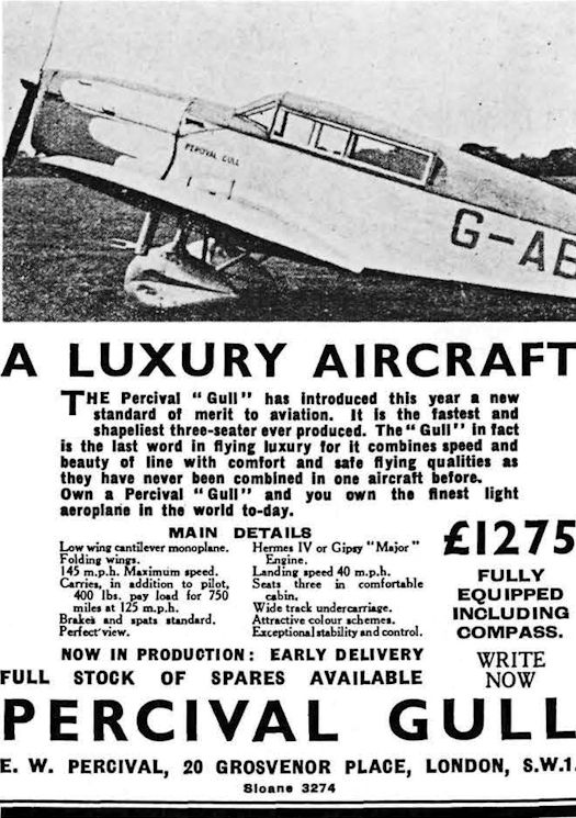 Самолёты на фотографии: Percival Gull - Великобритания - 1932