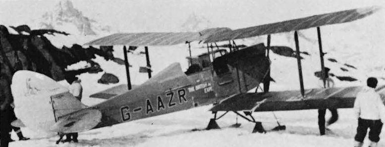 Регистрационный номер: G-AAZR Coupe G-AAZR on skis with polar bear painted on the rudder and "The British Arctic Air Route Expedition" on the fuselage. This photo shows well how the downward-opening door flap was needed on the front cockpit to allow the occupant to get in and out. The roof has been removed from the pilot's (rear) cockpit and the wing-folding jury struts are in position.