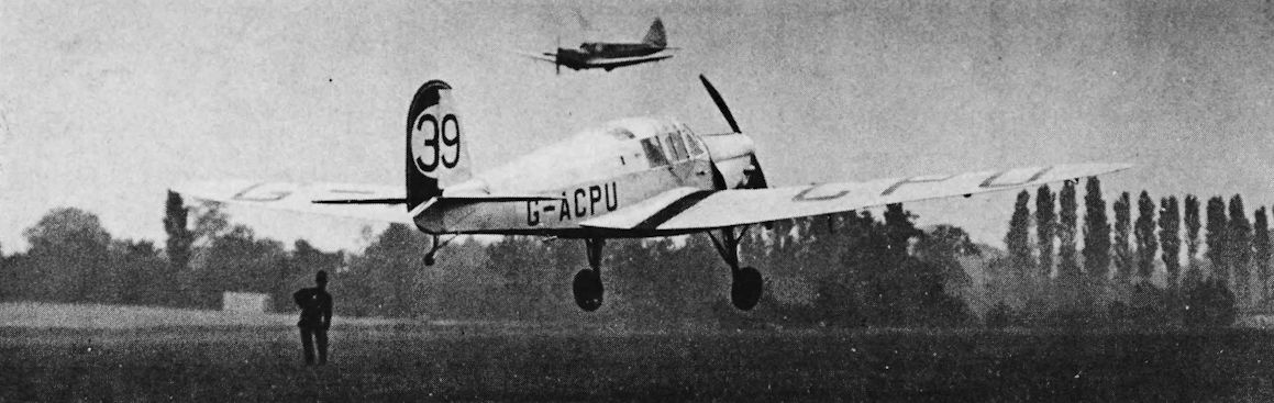 Upper: G-AAXG as "76" made the fastest time in the 1930 King's Cup fitted with straight-axle undercarriage and small racing wheels.