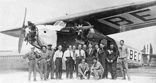 Регистрационный номер: G-EBTS [2], H-NADK [2] The photo shows c/n 4953 as the Duchess of Bedford's G-ABTS which had been fitted with a 480 hp geared Jupiter VIII and 4-blade propeller in 8.29 and named "The Spider" for its record return flight to India. The pilot Capt C.D.Barnard (right) and engineer R.F.(Bob) Little are seen here before the Capetown return flight in 1930. The front collector ring and exhausts had been removed from the uncowled engine but were replaced in 1.31. In all the F-VII variants the elevator and rudder control wires ran along outside the fuselage near the top as can just be seen here,
