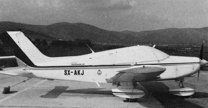 Регистрационный номер: SX-AKJ Piper Warrior SX-AKJ (268) of the Piraeus Aero Club tied down on the apron at Marathon on 23.10.83.