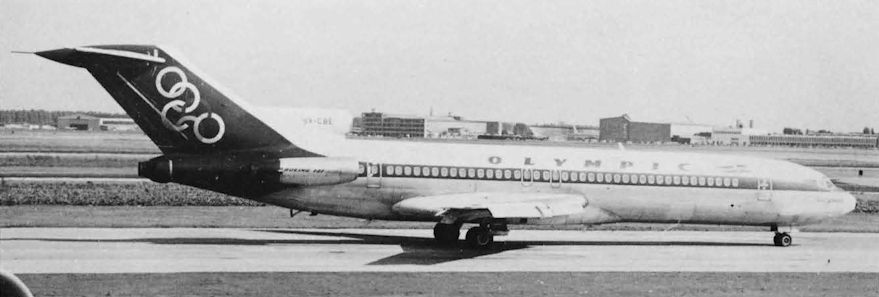 Регистрационный номер: SX-CBE Olympic Boeing 727 SX-CBE "Mount Athos" taxles past at Amsterdam In March 1972.