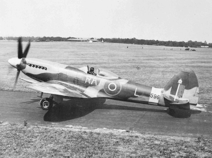 Регистрационный номер: PK596 [2] Example of Spitfire F.22s of No. 613 (City of Manchester) Squadron. PK596 RAT-L taxies along the perimeter track, showing its squadron badge on the fin.