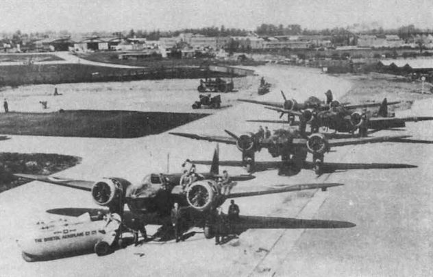 Нехватка аэродромов в джунглях заставляла сажать на небольшие пятачки по нескольку авиачастей. На снимке «четверка» из 34-й и «пятерка» из 113-й эскадрилий на летном поле в районе Джесоре. Бирма, зима 1942-1943 гг.