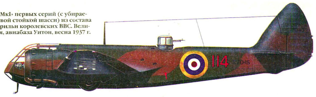 Регистрационный номер: K7045 "Бленхейм Mk I" первых серий (с убираемой хвостовой стойкой шасси) из состава 114-й эскадрильи королевских ВВС. Великобритания, авиабаза Уитон, весна 1937 г.