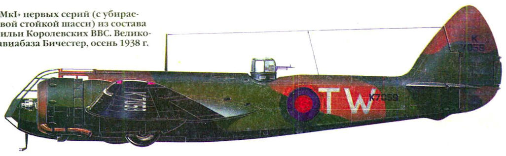 Регистрационный номер: K7059 "Бленхейм Mk I" первых серий (с убираемой хвостовой стойкой шасси) из состава 90-й эскадрильи Королевских ВВС. Великобритания, авиабаза Бичестер, осень 1938 г.