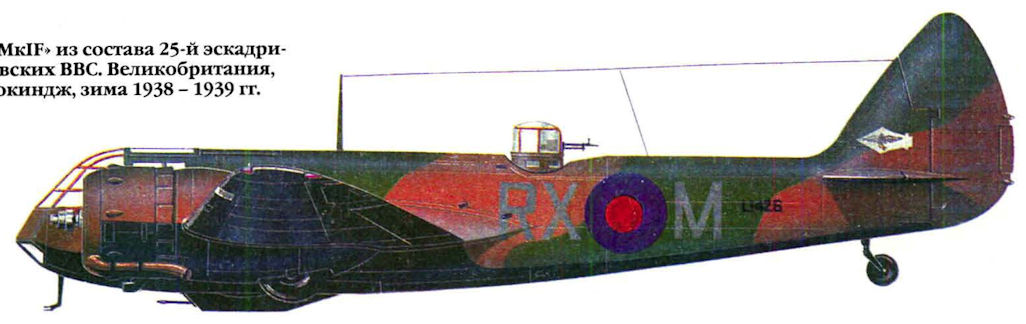 Регистрационный номер: L1426 "Бленхейм Mk IF" из состава 25-й эскадрильи Королевских ВВС. Великобритания, авиабаза Хокиндж, зима 1938-1939 гг.
