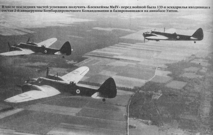 В числе последних частей успевших получить "Бленхеймы Mk IV" перед войной была 139-я эскадрилья входившая в состав 2-й авиагруппы Бомбардировочного Командования и базировавшаяся на авиабазе Уитон.