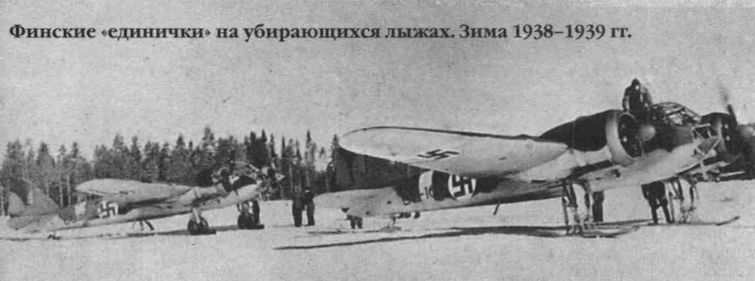 Финские "единички" на убирающихся лыжах. Зима 1938-1939 гг.